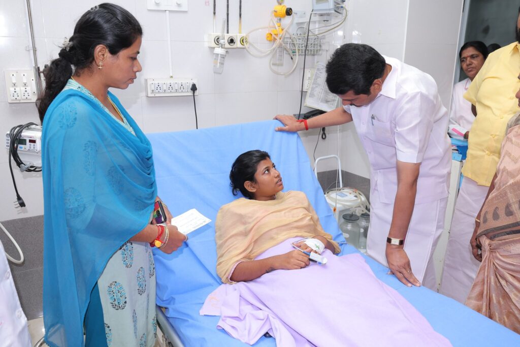 சென்ற சனிக்கிழமை அன்று, கரூரில் எதிர்பாராத கூட்ட நெரிசலில் சிக்கி காயமடைந்தவர்களை, இன்று கரூர் மருத்துவக் கல்லூரி மருத்துவமனையில் சந்தித்து நலம் விசாரித்து, மாண்புமிகு தமிழ்நாடு முதலமைச்சர் தளபதி மு.க. ஸ்டாலின் அவர்களின் ஆணைக்கிணங்க, முதலமைச்சரின் பொது நிவாரண நிதியிலிருந்து தலா ரூ. 1 லட்சம் நிவாரண தொகை வழங்கிய போது.