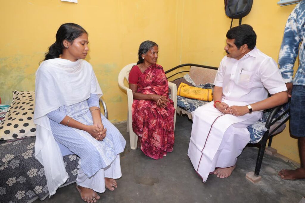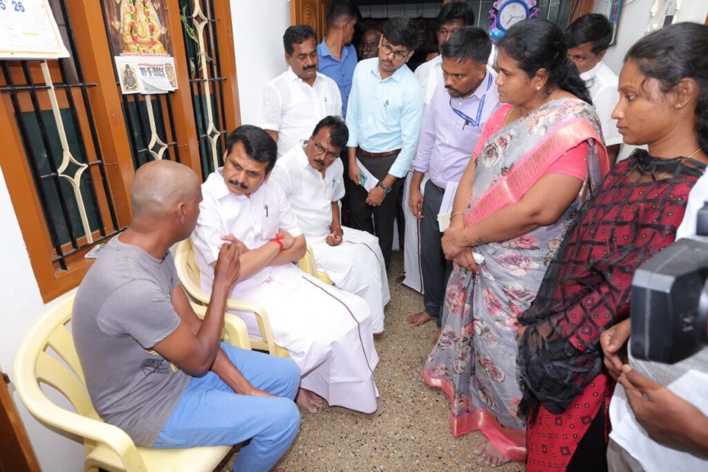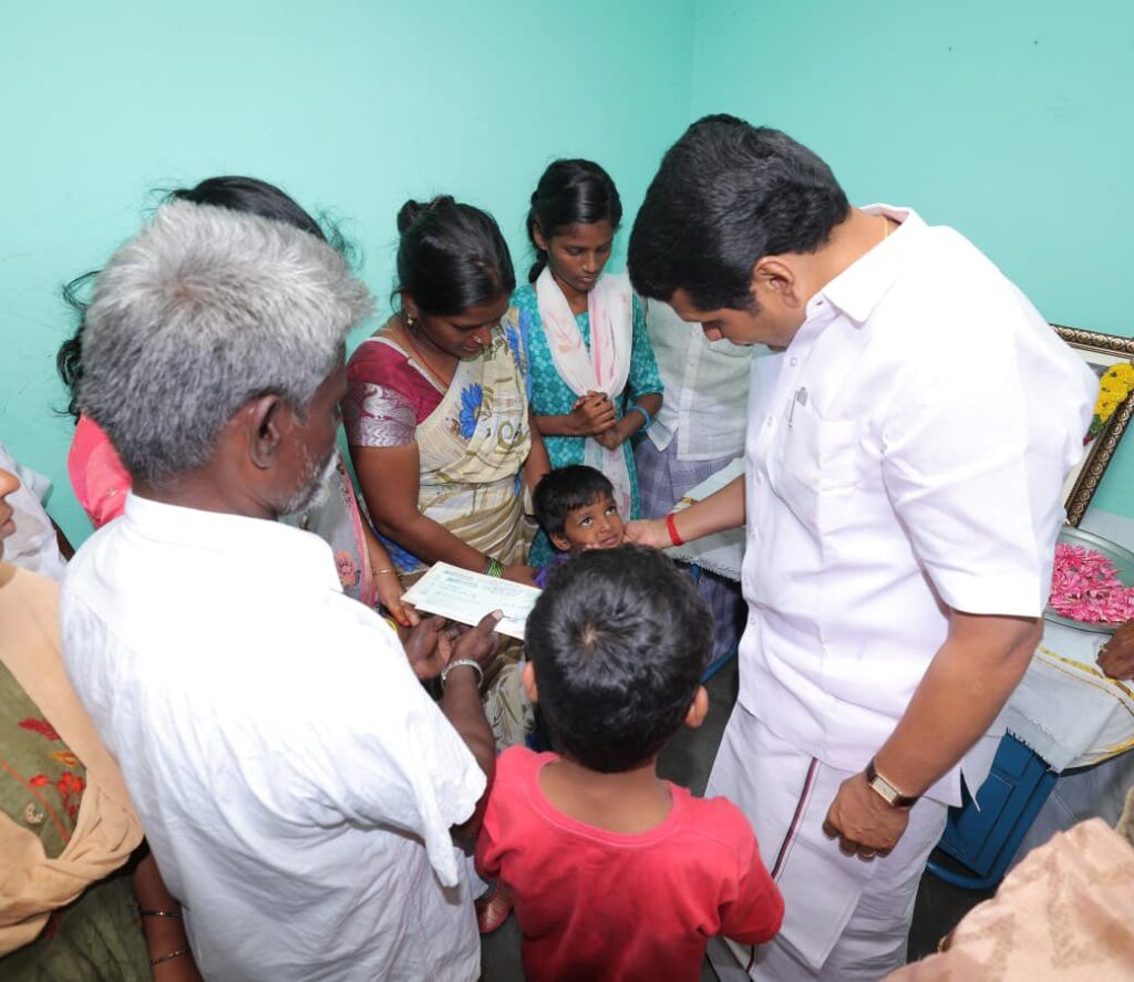 கடந்த சனிக்கிழமை அன்று, கரூரில் எதிர்பாராத கூட்ட நெரிசலில் சிக்கி உயிரிழந்தவர்களின் குடும்பத்தினரை இன்று நேரில் சந்தித்து ஆறுதல் கூறி, மாண்புமிகு தமிழ்நாடு முதலமைச்சர் தளபதி மு.க. ஸ்டாலின் அவர்களின் ஆணைக்கிணங்க, முதலமைச்சரின் பொது நிவாரண நிதியிலிருந்து தலா ரூ. 10 லட்சம் நிவாரண தொகை வழங்கிய போது.