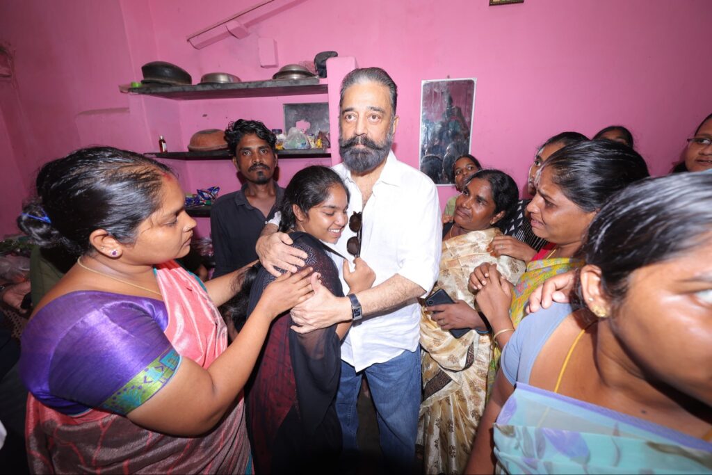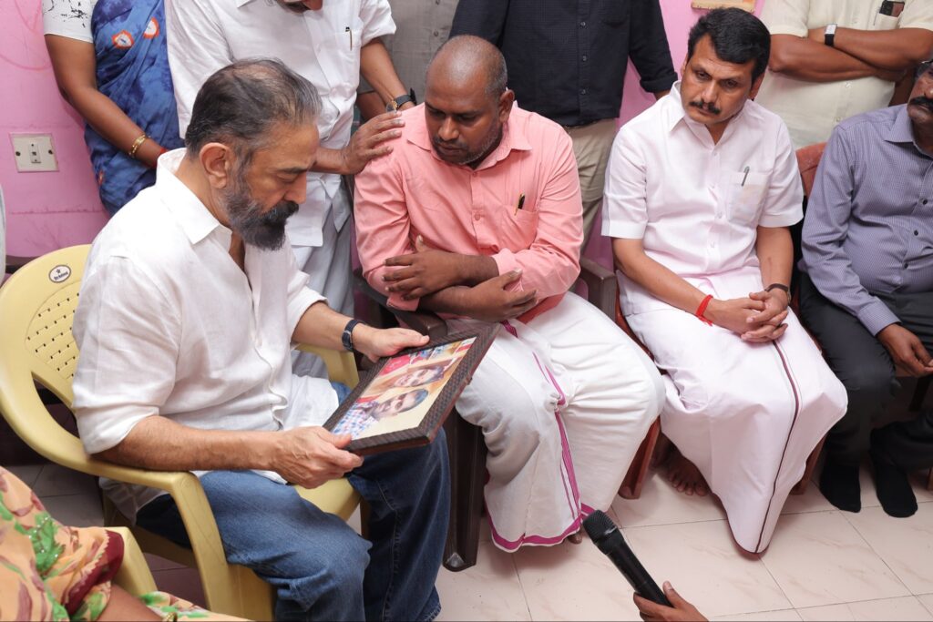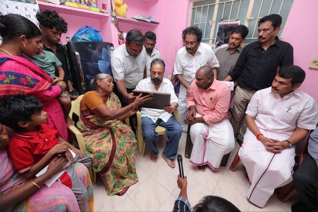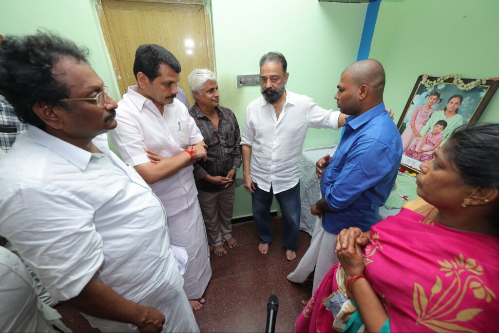 மக்கள் நீதி மய்யம் தலைவரும், மாண்புமிகு மாநிலங்களவை உறுப்பினருமான திரு. கமலஹாசன் அவர்கள், கரூரில் எதிர்பாராத கூட்ட நெரிசலில் சிக்கி உயிரிழந்தவர்களின் குடும்பத்தினரை, இன்று நேரில் சந்தித்து ஆறுதல் கூறி நிவாரண உதவிகள் வழங்கினார்கள். மேலும் விபத்து நிகழ்ந்த இடத்தை ஆய்வு செய்தார்.. மக்கள் நீதி மய்யம் கட்சி நிர்வாகிகள் உடனிருந்தனர்.