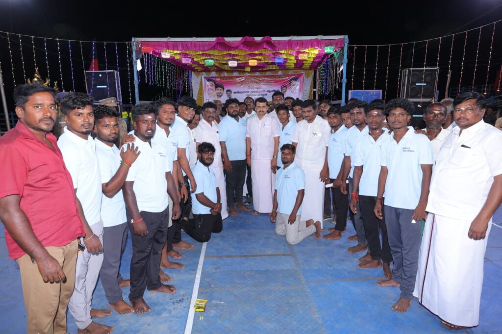 கழகத் தலைவர், மாண்புமிகு தமிழ்நாடு முதலமைச்சர் தளபதி மு.க. ஸ்டாலின் அவர்களின் நல்லாசிகளுடன், மாண்புமிகு தமிழ்நாடு துணை முதலமைச்சர், தமிழ்நாட்டில் இருந்து உலகத்தரமான விளையாட்டு வீரர்களை உருவாக்கிடும் நோக்கில் உழைத்திடும் இளைஞர்களின் எழுச்சி நாயகர் உதயநிதி ஸ்டாலின் அவர்களின் ஆசிகளுடன், கரூர் பெரியாண்டாங்கோவில் குடித்தெரு கழக கிளை கழகம் மற்றும் அப்பகுதி உதயா பிரதர்ஸ் கபாடி குழு இணைந்து நடத்தும் முதலாம் ஆண்டு கபாடி போட்டியை இன்று துவக்கி வைத்த போது..
