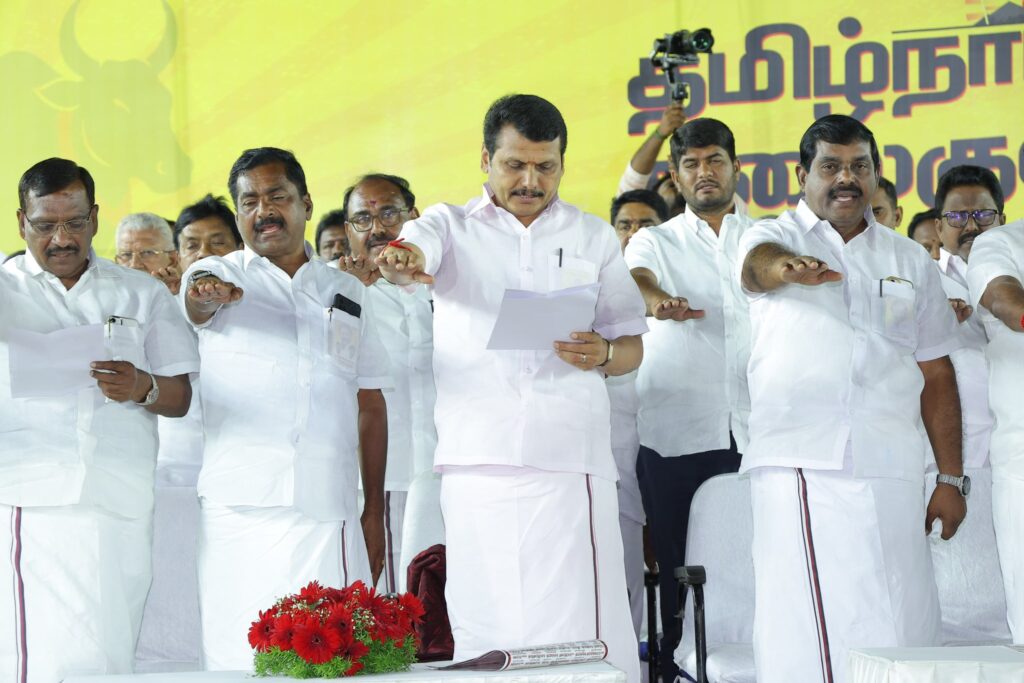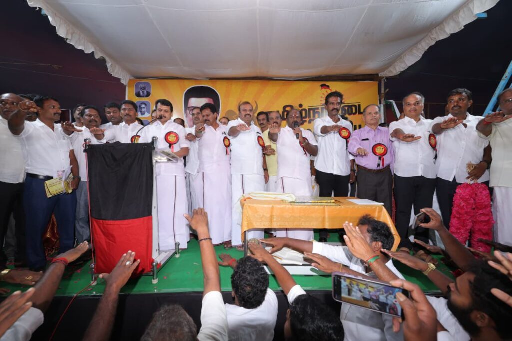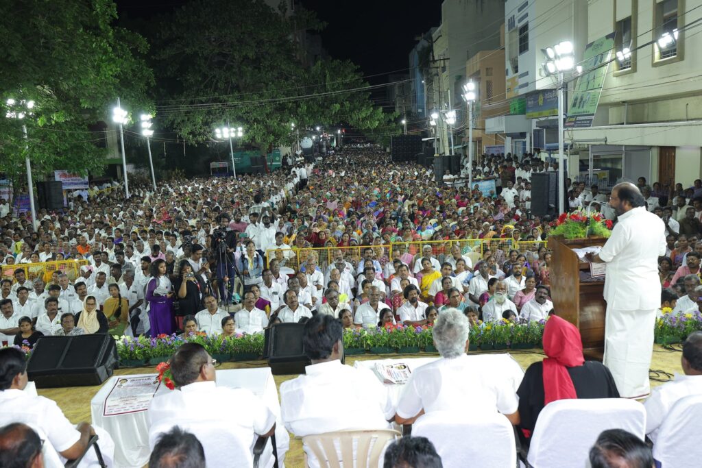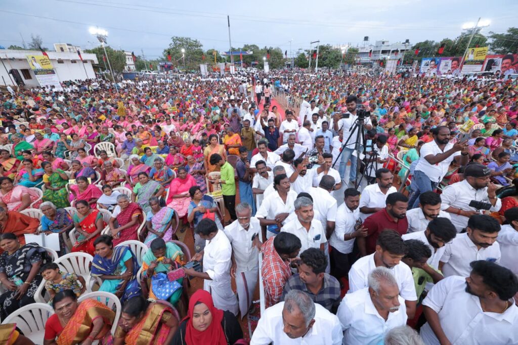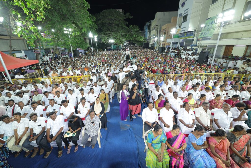எளிய மக்களுக்கு என்றும் உரியவர், மாண்புமிகு தமிழ்நாடு முதலமைச்சர் தளபதி மு.க. ஸ்டாலின் அவர்களின் ஆணைக்கிணங்க, மாண்புமிகு தமிழ்நாடு துணை முதலமைச்சர், நமது நம்பிக்கை நாயகர் உதயநிதி ஸ்டாலின் அவர்களின் வழிகாட்டுதலில், கோவை தெற்கு மாவட்ட கழகத்தின் சார்பில், கோவை கருமத்தம்பட்டி கலைஞர் திடலில், தமிழ்நாட்டின் மண், மொழி, மானம் காக்க ‘ஓரணியில் தமிழ்நாடு’ இயக்கத்தில் இணைந்துள்ள, ஒரு கோடிக்கும் மேற்பட்ட குடும்பங்களால் முன்மொழியப்பட்டுள்ள ‘தமிழ்நாட்டை தலைகுனிய விட மாட்டேன்’ தீர்மான ஏற்ப பொதுக்கூட்டம், அனைவரும் உறுதிமொழியேற்க மிகச் சிறப்பாக நடைபெற்றது.. கோவை தெற்கு மாவட்ட செயலாளர் திரு. தளபதி முருகேசன் தலைமையில் நடைபெற்ற இக்கூட்டத்தில், கருமத்தம்பட்டி நகரச் செயலாளர் திரு. நித்யா மனோகரன் வரவேற்புரை வழங்க, மாண்புமிகு ஈரோடு கிழக்கு சட்டமன்ற உறுப்பினர் திரு. வி.சி. சந்திரகுமார் மற்றும் தலைமை கழக பேச்சாளர் திரு. சரவணன் மணிவேல் சிறப்புரையாற்ற, மாண்புமிகு மக்களவை உறுப்பினர்கள், கழக நிர்வாகிகள், உள்ளாட்சி அமைப்பு பிரதிநிதிகள், கழக தொண்டர்கள் மற்றும் பொதுமக்கள் கலந்துக் கொண்டனர்..