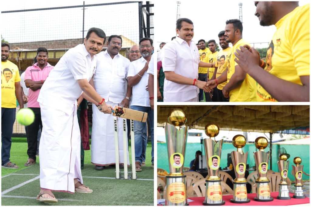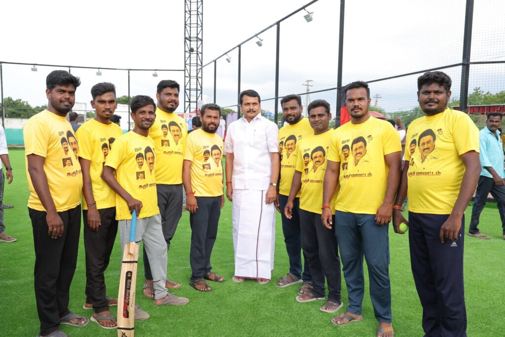 தமிழ்நாட்டில் இருந்து உலக தரத்திலான விளையாட்டு வீரர்களை உருவாக்கிடும் உன்னத நோக்கில் அயராது உழைக்கும் நமது இளம் தலைவர் உதயநிதி ஸ்டாலின் அவர்களின் ஆசியுடன், இன்று கரூர் Viru Turf முதன் முறையாக நடத்தும் பகலிரவு கிரிக்கெட் போட்டிகளை பார்வையிட்ட போது.. கரூர் மாவட்ட கழகத்தின் சார்பாக, வெற்றி பெரும் அணிகளுக்கு மொத்தமாக ரூ. 4.25 லட்சம் பரிசுத்தொகை வழங்கப்படுகிறது.