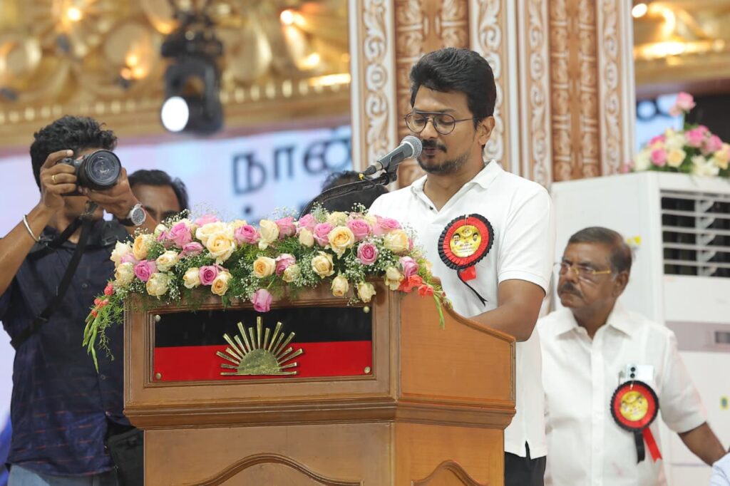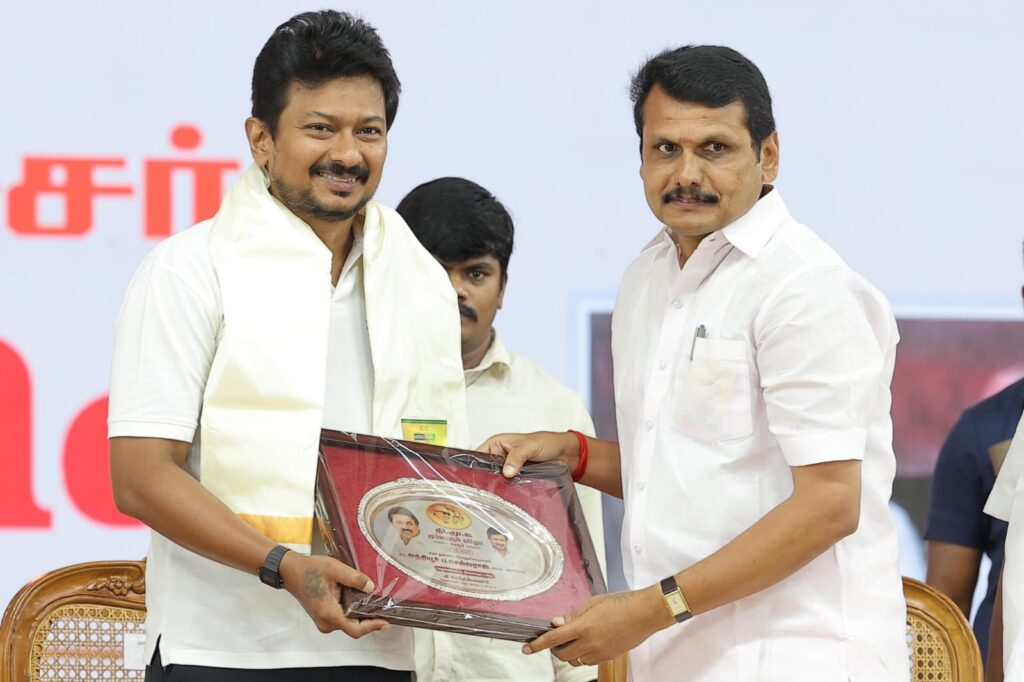 கரூரில் இன்று நடைபெற்ற கழக முப்பெரும் விழாவில் எழுச்சியுரையாற்றிய, கழக இளைஞர் அணிச் செயலாளர், மாண்புமிகு தமிழ்நாடு துணை முதலமைச்சர், நாளை நமக்கான வரலாற்றை வரைந்திடப் போகும் நம்பிக்கை நாயகர் உதயநிதி ஸ்டாலின் அவர்களுக்கு கரூர் மாவட்ட கழகத்தின் சார்பாகவும், கரூர் மாவட்ட மக்களின் சார்பாகவும் எனது கோடான கோடி நன்றிகளை சமர்ப்பித்து மகிழ்கிறேன்.