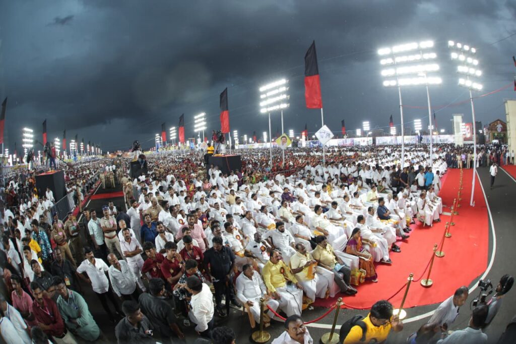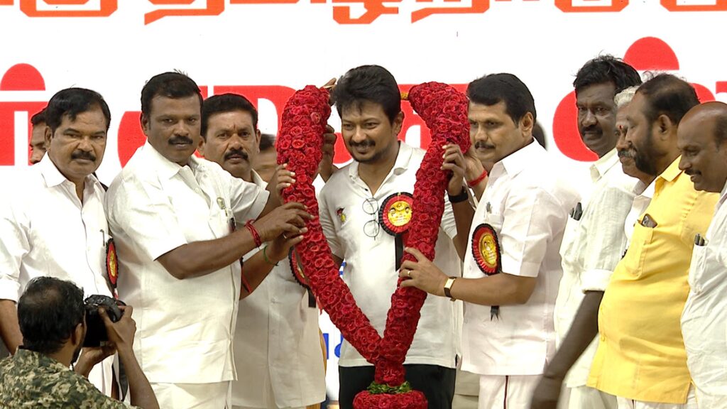 கரூரில் இன்று நடைபெற்ற கழக முப்பெரும் விழாவில், கொட்டும் மழையிலும் கொள்கைப் பிடிப்போடு, கழகத் தலைவர், மாண்புமிகு தமிழ்நாடு முதலமைச்சர் தளபதி மு.க. ஸ்டாலின் அவர்களின் சிறப்புரையையும், மாண்புமிகு தமிழ்நாடு துணை முதலமைச்சர், நமது நம்பிக்கை நாயகர் உதயநிதி ஸ்டாலின் அவர்களின் எழுச்சியுரையும் கேட்டு கூடியிருந்த, கரூர் மாவட்ட சொந்தங்கள் அனைவருக்கும், உங்களது குடும்பத்தில் ஒருவனான எனது அளவற்ற அன்பையும், நன்றிகளையும் தெரிவித்து மகிழ்கிறேன்.