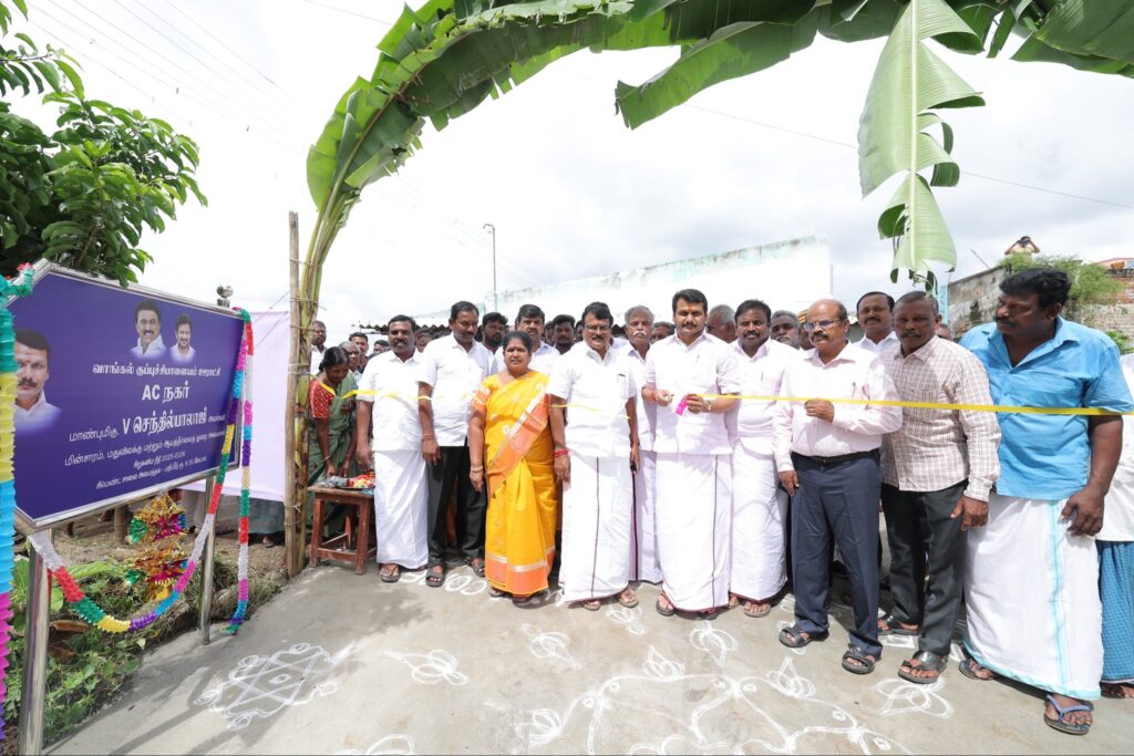 விடியல் நாயகர், மாண்புமிகு தமிழ்நாடு முதலமைச்சர் தளபதி மு.க. ஸ்டாலின் அவர்களின் நல்லாசியுடன், கரூர் சட்டமன்றத் தொகுதி, வாங்கல் குப்புச்சிபாளையம் ஊராட்சி, தவுட்டுப்பாளையம் AC நகர் – செல்வம் நகர் பகுதியில், புதிதாக அமைக்கப்பட்டுள்ள சிமெண்ட் சாலையை இன்று மக்கள் பயன்பாட்டுக்கு திறந்து வைத்த போது. இந்நிகழ்வில், கரூர் மாவட்ட ஆட்சியர் திரு மீ. தங்கவேல் இ.ஆ.ப., உள்ளாட்சி அமைப்புப் பிரதிநிதிகள் மற்றும் பொதுமக்கள் கலந்துக் கொண்டனர்.