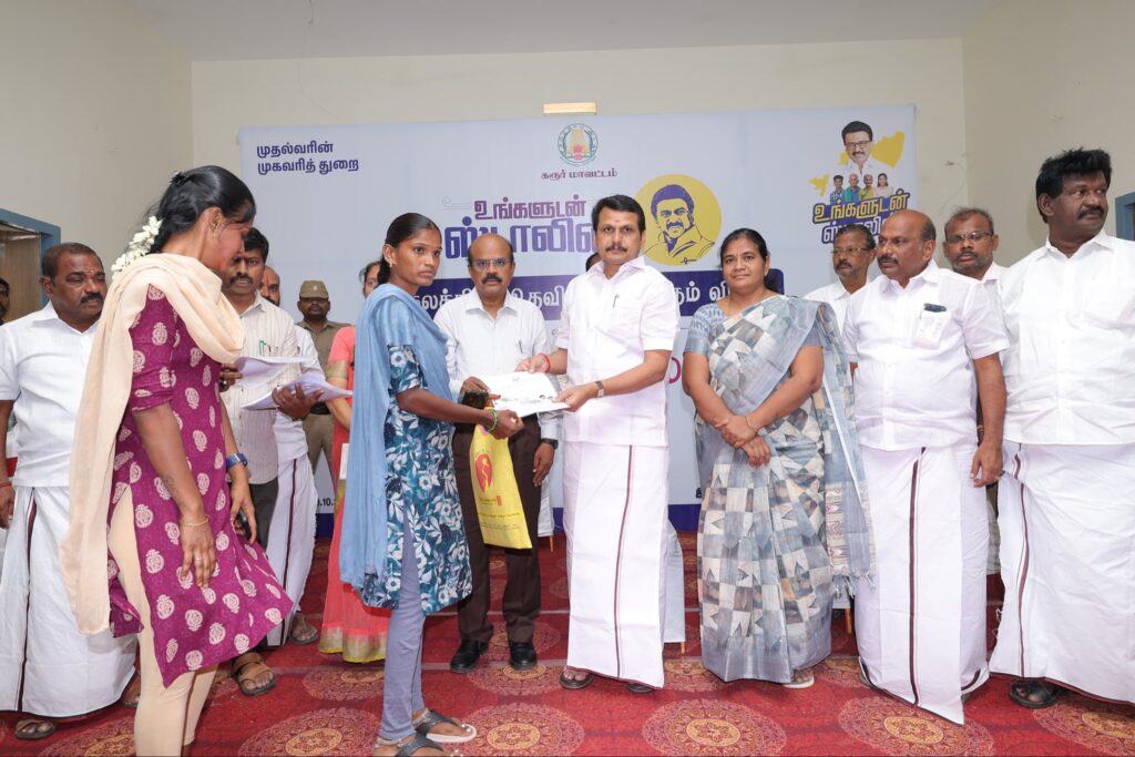 மாண்புமிகு தமிழ்நாடு முதலமைச்சர் தளபதி மு.க. ஸ்டாலின் அவர்களால் துவக்கி வைக்கப்பட்ட #உங்களுடன்_ஸ்டாலின் திட்டத்தின் சிறப்பு முகாம்களின் ஒருபகுதியாக, இன்று கரூர் சுக்காலியூர், நவலடியான் மண்டபத்தில் நடைபெற்ற சிறப்பு முகாமில், அப்பகுதியை சேர்ந்த பொதுமக்களிடம் கோரிக்கை மனுக்கள் பெற்றுக்கொண்ட போது. இந்நிகழ்வில் கரூர் மாவட்ட ஆட்சியர் திரு. தங்கவேல் இ.ஆ.ப, உள்ளாட்சி அமைப்பு பிரதிநிதிகள் மற்றும் பொதுமக்கள் கலந்து கொண்டனர்.