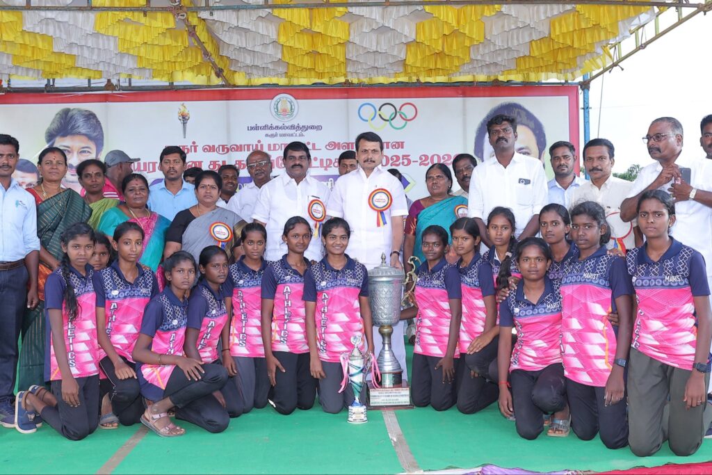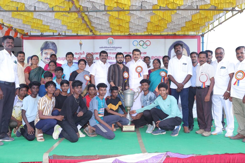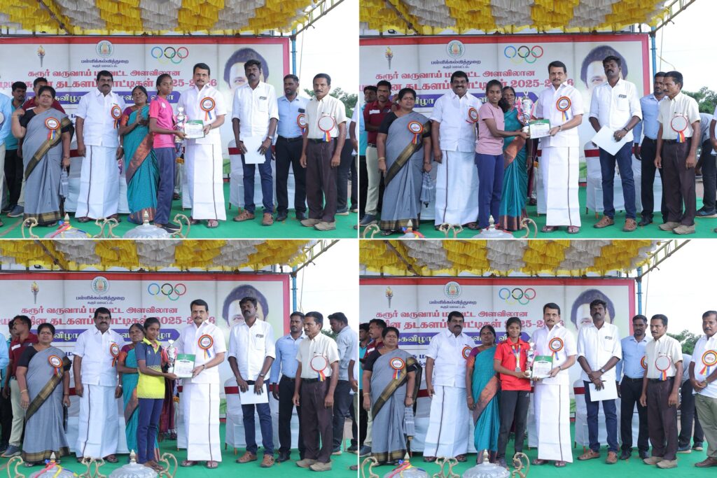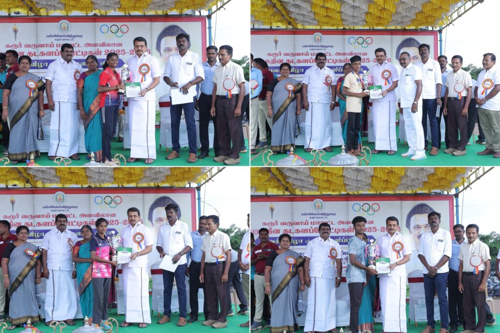 மாணவச் செல்வங்களின் தாயுமானவர், மாண்புமிகு தமிழ்நாடு முதலமைச்சர் தளபதி மு.க. ஸ்டாலின் அவர்கள் நல்லாசிகளுடன், உலக தரத்தில் விளையாட்டு வீரர்களை, தமிழகத்தில் இருந்து உருவாக்கிட வேண்டும் என்ற உன்னத முனைப்பில் அயராது உழைத்திடும் மாண்புமிகு தமிழ்நாடு துணை முதலமைச்சர், இளம் தலைவர் உதயநிதி ஸ்டாலின் அவர்களின் வழிகாட்டுதலின்படி, கரூர் மாவட்ட பள்ளி கல்வித்துறை சார்பில், கரூர் வருவாய் மாவட்ட அளவிலான பள்ளி மாணவ மாணவிகளுக்கான குடியரசு தின தடகளப் போட்டிகளின் பரிசளிப்பு விழாவில் கலந்துக் கொண்டு, மாணவச் செல்வங்களுக்கு பரிசுகள் வழங்கிய போது.