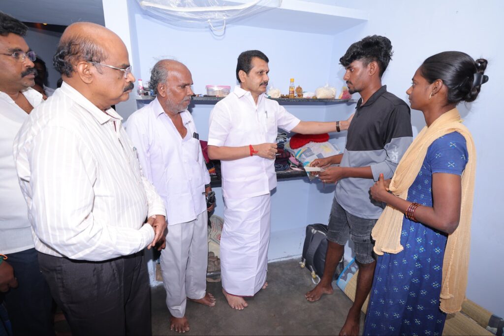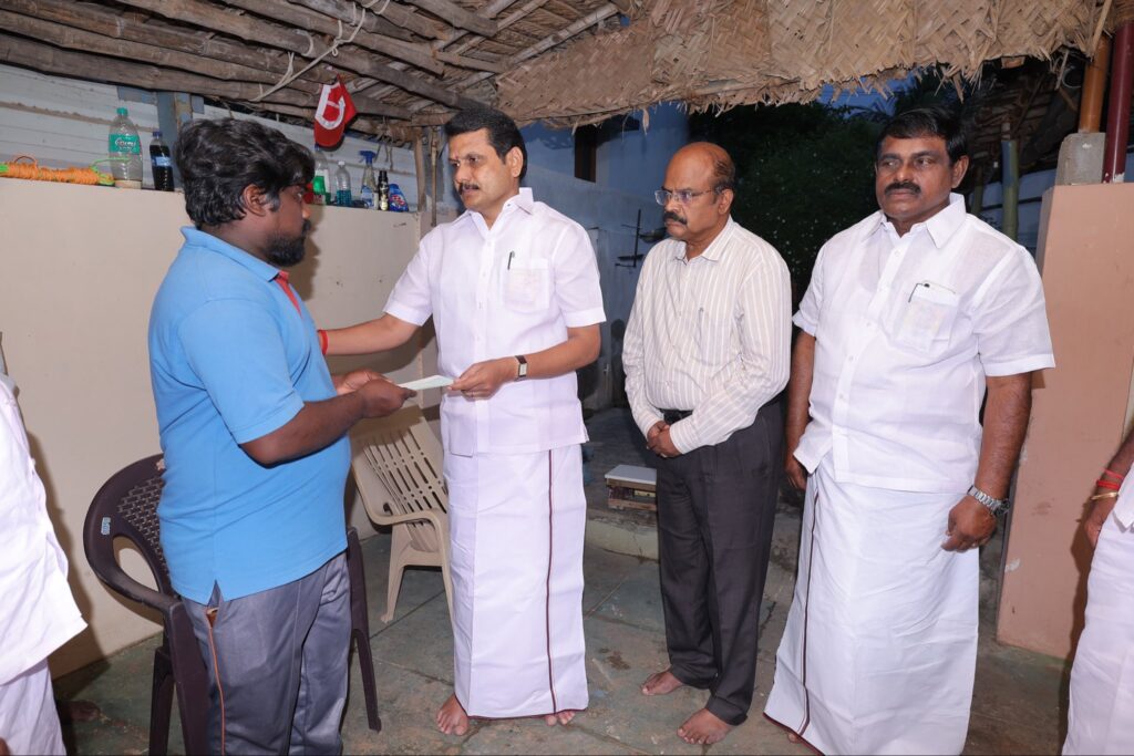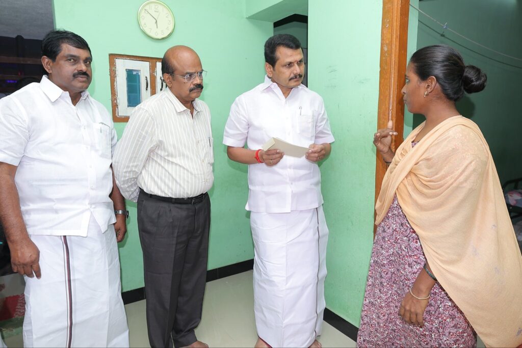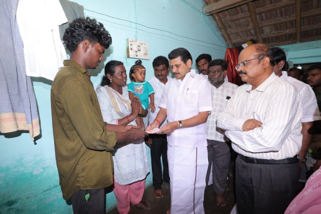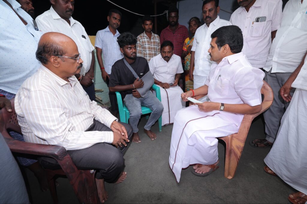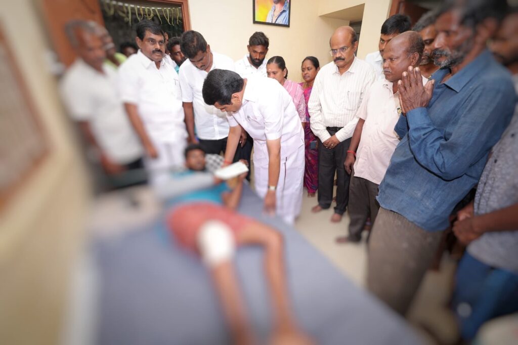 சென்ற மாதம் 27-ஆம் தேதியன்று, கரூரில் எதிர்பாராத கூட்ட நெரிசலில் சிக்கி காயமடைந்தவர்களை, இன்று சந்தித்து நலம் விசாரித்து, மாண்புமிகு தமிழ்நாடு முதலமைச்சர் தளபதி மு.க. ஸ்டாலின் அவர்களின் ஆணைக்கிணங்க, முதலமைச்சரின் பொது நிவாரண நிதியிலிருந்து நிவாரண தொகை வழங்கிய போது.